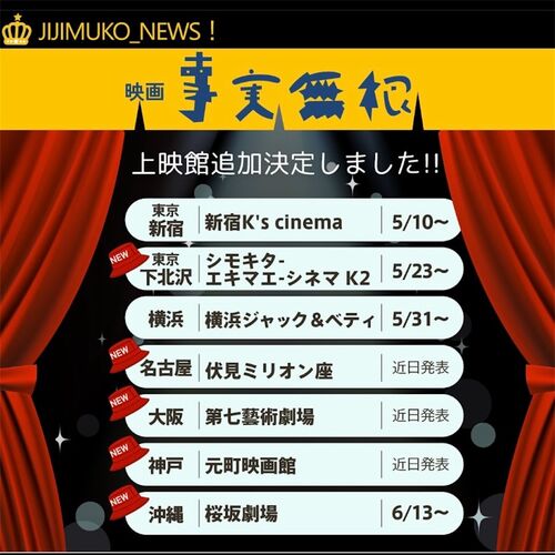 明けまして122日目。 2/21〜4/10までの京都シネマに足を運んでくださった方々、これから観て頂ける全国の皆さまに朗報です。 5/10〜 新宿K'sシネマ 5/23〜 下北沢 シモキタエキマエシネマK2 5/31〜 横浜ジャック&ベティ 6/13〜 沖縄 桜坂劇場 近日発表〜 名…